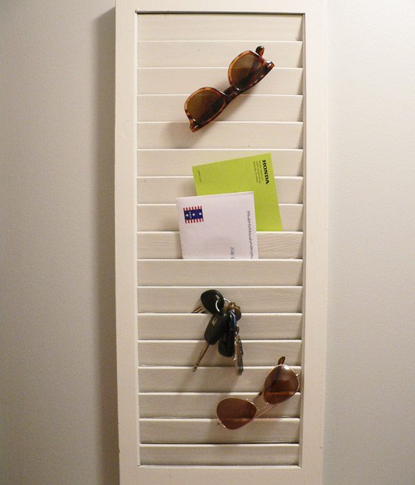 Pero, ¿por qué mostrar solo fotos en una persiana de madera cuando hay mucho más para lo que puede usarla? Considere convertir una persiana vieja en un organizador de pared para cosas como su correo, llaves, anteojos de sol y otros artículos pequeños. Puedes dejar este original organizador en el pasillo. Echa un vistazo a las cosas que hacemos para ver cómo se hace.