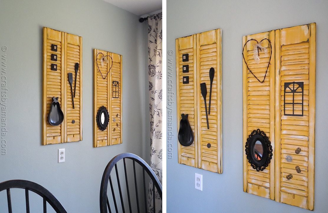 Ahora que sabe cómo convertir una persiana en un organizador de pared o al menos en una buena pieza para exhibir en las paredes de su hogar, puede concentrarse un poco más en la apariencia de la persiana. Si se trata de una contraventana vieja, puede conservar su acabado desgastado, pero si ese no es el caso, podría desgastar intencionalmente la madera como se muestra en craftsbyamanda .