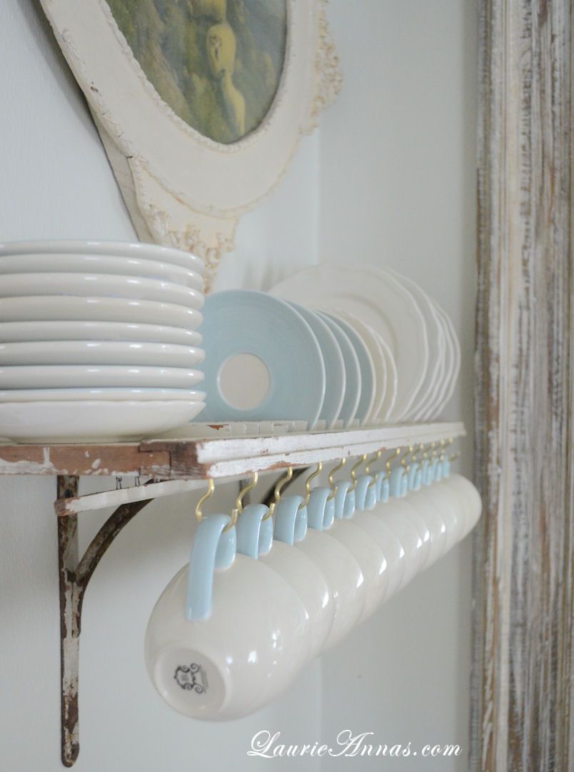 Convertir persianas en muebles es un poco más difícil, pero no tanto si elige usar la persiana como un simple estante. Considere agregarlo a la cocina donde podría servir como estante para platos. De hecho, es perfecto para eso y si agrega algunos ganchos para colgar tazas y tazas, gana mucho espacio de almacenamiento. El proyecto aparece en Lauriennas .