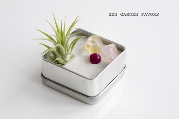 Si realmente te sientes inspirado y quieres compartir la alegría de tener un mini jardín zen con todos tus seres queridos, tal vez sería bueno hacer pequeños kits de regalos para ellos para tu próximo gran evento. Puedes usar unas cajitas y poner un poco de arena dentro, una plantita de aire y dos o tres conchas, cuentas o piedritas y así cada invitado puede tener su propio mini jardín zen para llevar a casa. Quién sabe, tal vez esto los inspire a hacer sus propias versiones más grandes. Echa un vistazo a ruffledblog para obtener más detalles.