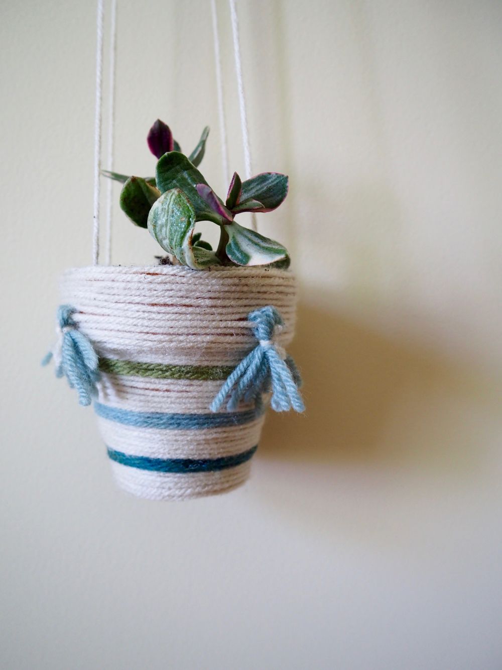 Otro elemento importante a considerar es el tipo real de macetero que vas a colgar. Una opción es envolver hilo o cuerda alrededor de una maceta de terracota u otro tipo de maceta. De esa manera, puede transformar fácil y rápidamente cualquier macetero normal en un macetero colgante .