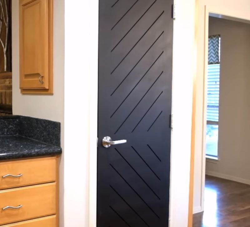 Esto es algo a tener en cuenta independientemente del tipo de puerta que decidas instalar en la despensa de tu cocina o si es una puerta vieja o nueva. Agregar un patrón decorativo puede cambiar totalmente su estética y esto es algo que se puede hacer en cualquier etapa del proyecto. Nos gusta mucho el patrón geométrico que aparece en prettyinthepines , así que dirígete allí para obtener más detalles.
