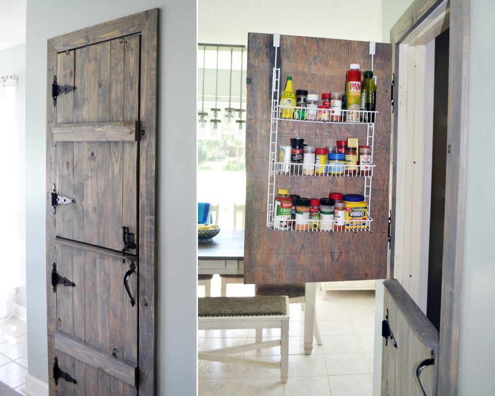 Otra idea maravillosa es actualizar la puerta de la despensa existente en lugar de comprar una nueva y terminar gastando más de lo necesario. Una puerta plana básica se puede transformar por completo usando solo un poco de madera contrachapada y un poco de pintura. Mire este video de EvanAndKatelyn para obtener algunos consejos.