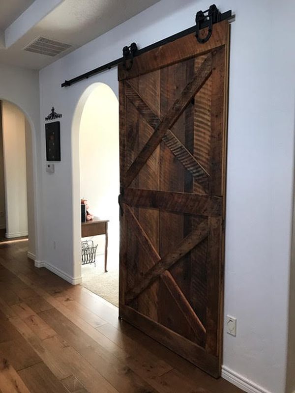 Las puertas corredizas de granero son hermosas y se adaptan perfectamente a las despensas de la cocina. Ahorran espacio y se ven muy encantadores, además son fáciles de construir desde cero, incluido el mecanismo deslizante. Para la puerta en sí, necesita una pieza grande de madera contrachapada y nueve tablas de madera, y para el mecanismo, puede usar un kit de herrajes para puertas de granero. Pinta la puerta para darle carácter.