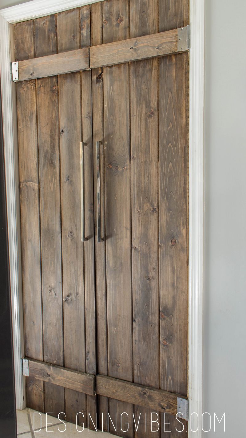 Las puertas de granero y las despensas de la cocina van de la mano y no son solo las puertas corredizas las que se ven geniales, sino también estas puertas dobles que crean un ambiente vintage de granja y mantienen la decoración simple y familiar. La idea proviene de designingvibes , por lo que también puede encontrar más detalles sobre cómo puede construir puertas de despensa tan hermosas.
