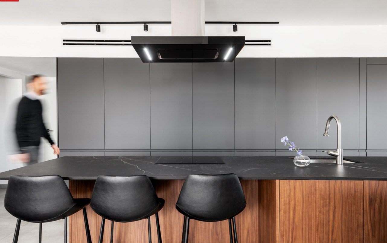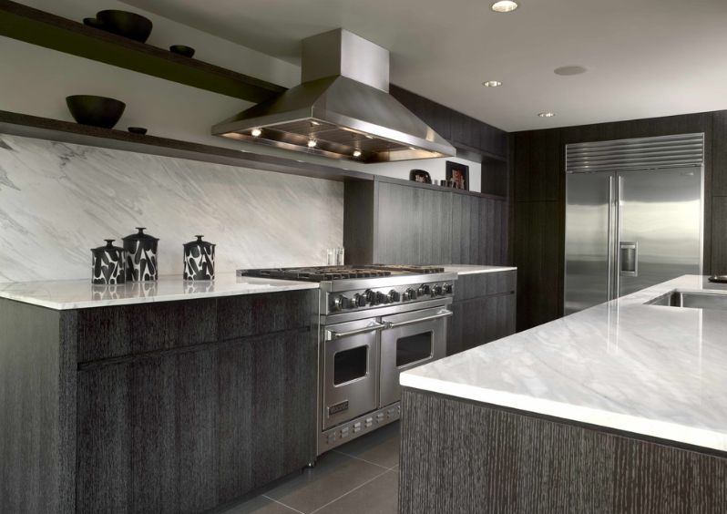 6. Una cocina de mármol gris elegante y moderna