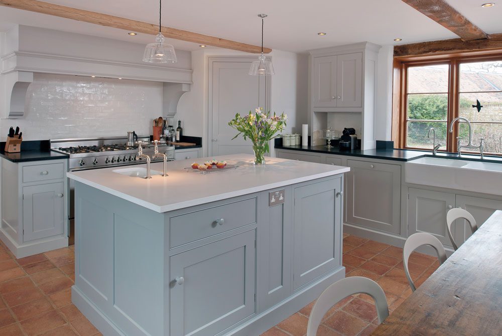 14. Una cocina de estilo campestre con sutiles toques de gris