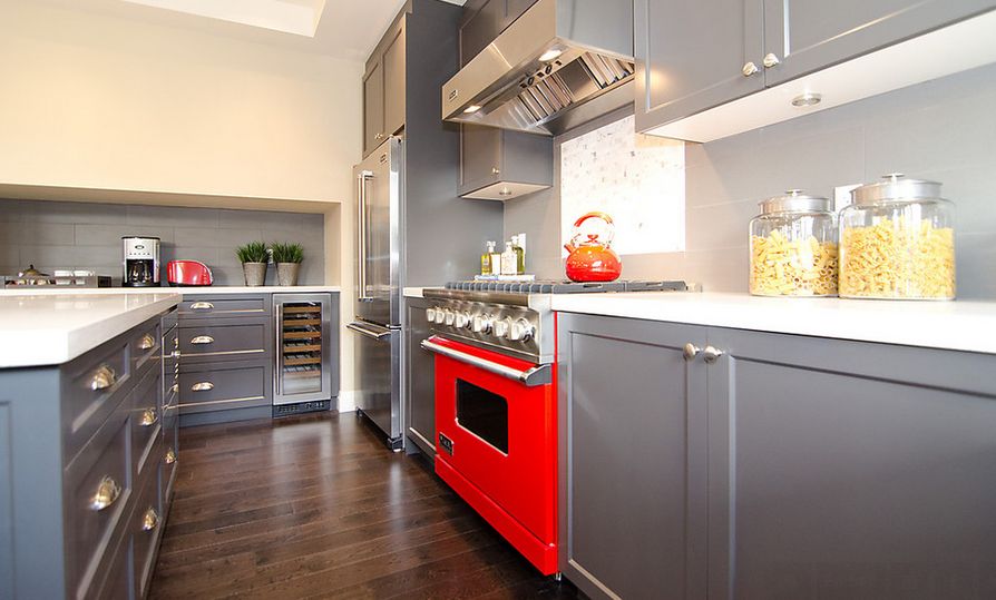 Sin embargo, si no está listo para hacer todo lo posible con una cocina gris, simplemente opte por acentos más pequeños. Puede elegir una parte de su cocina para hacer gris, como los gabinetes, las paredes o el piso.