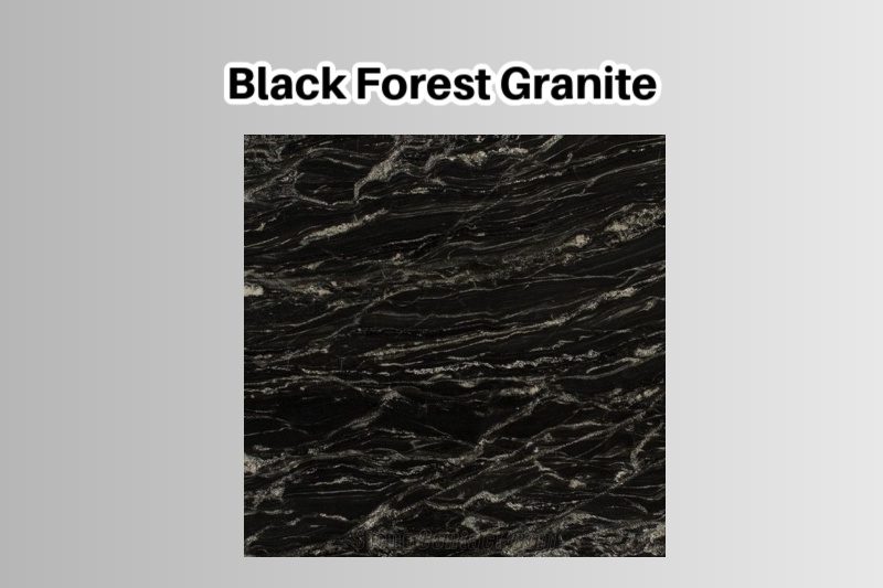La encimera de cocina negra más demandada hecha con granito es Black Forest. Los mostradores de granito hacen una declaración audaz y provienen de India y Brasil. Cada losa presenta vetas de marfil u oro que recorren su superficie. Con este estilo, ahorrará dinero a medida que pasen los años y sus encimeras negras sigan siendo las mismas.
