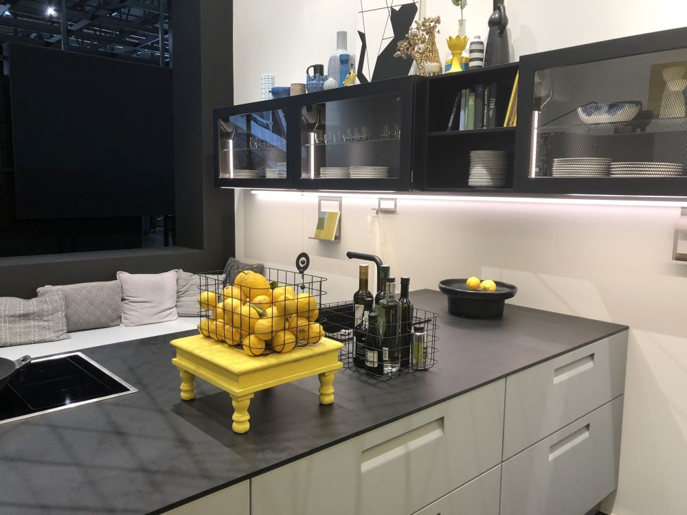 He aquí un ejemplo de cómo la fruta puede animar un espacio de cocina. Los limones amarillos brindan el toque de color perfecto para este estilo de encimera negra. Muchos colores se ven hermosos cuando se combinan con el negro, y el amarillo es uno de ellos.