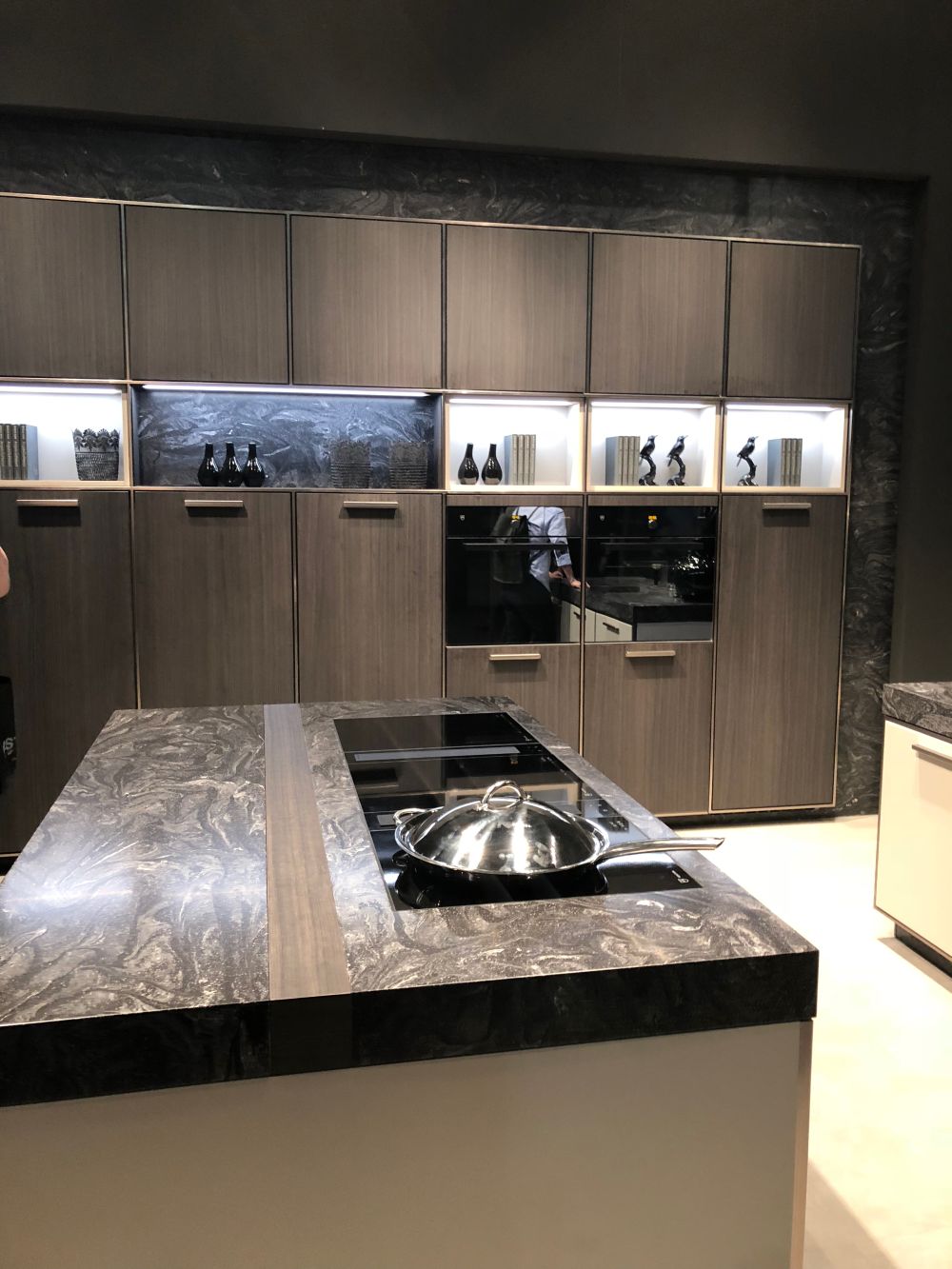 Esta isla ofrece comodidad, funcionalidad y estilo. Los grandes armarios negros envían un mensaje a la vez que ofrecen una contrarrespuesta con el color del suelo. Se logra un equilibrio con acabados y texturas contrastantes.