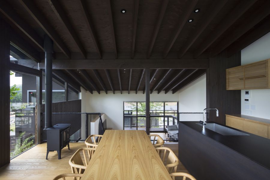 El uso de madera de teca para el techo, pero también para los gabinetes, permite que la cocina luzca refinada y sofisticada al mismo tiempo que mantiene su simplicidad. {Encontrado en kurosakisatoshi }.