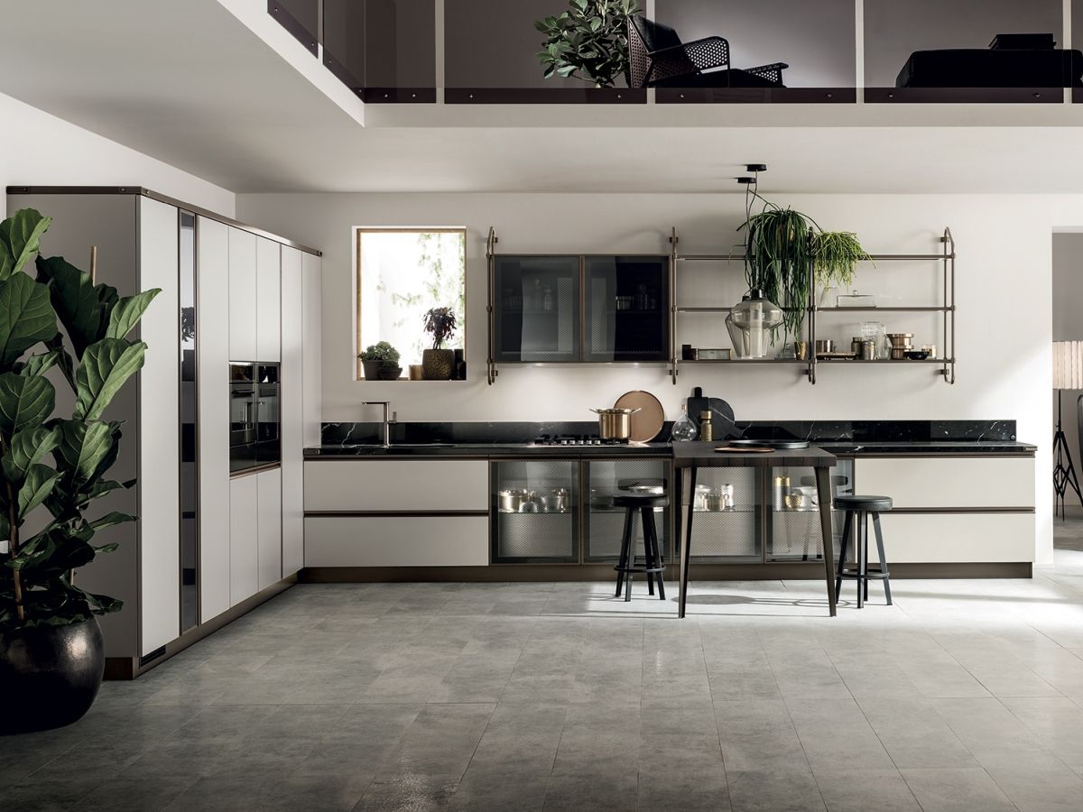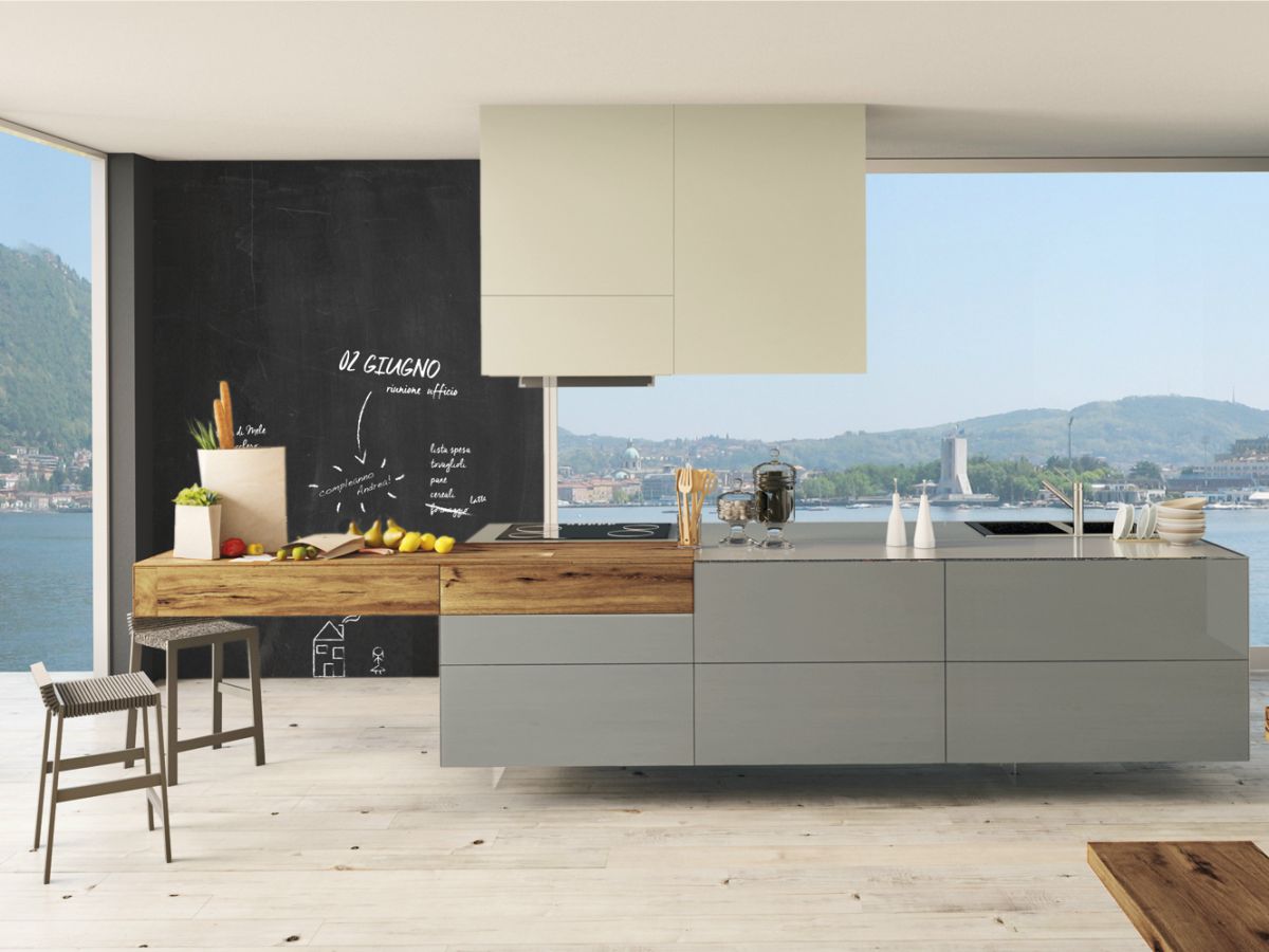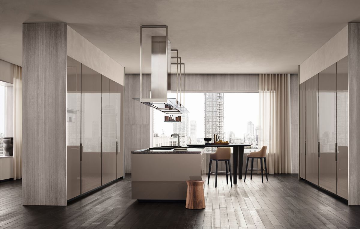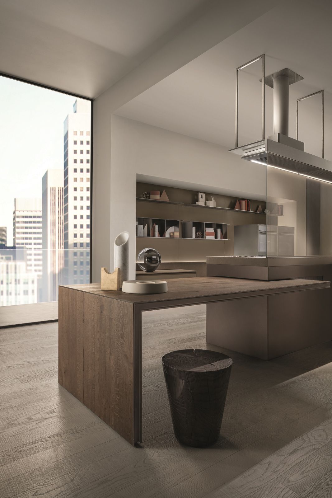 La serie de cocinas T45 de TM Italia estalla en elegancia y estilo. La colección utiliza materiales naturales cuidadosamente seleccionados con acabados originales que, en última instancia, pretenden plasmar muebles únicos en perfecta armonía con el espacio. Los materiales utilizados aquí incluyen vidrio, nogal y laminam.