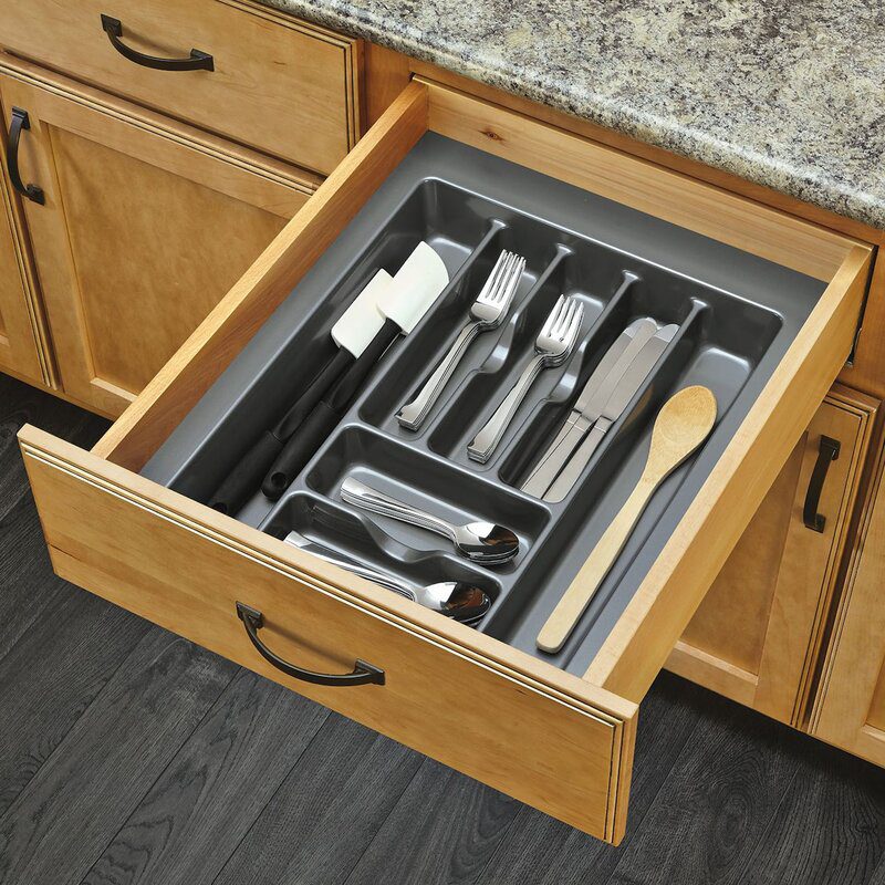 Por muy prácticos que sean algunos de los organizadores de cajones extensibles que te mostramos anteriormente, a veces incluso eso no funciona si ninguno de los dos tamaños disponibles no encaja correctamente. Si necesita un organizador que tenga el tamaño adecuado, es mejor que obtenga uno de estos insertos Rev-a-Shelf que se pueden recortar al tamaño exacto que necesita. Básicamente lo cortas con una sierra de mesa.