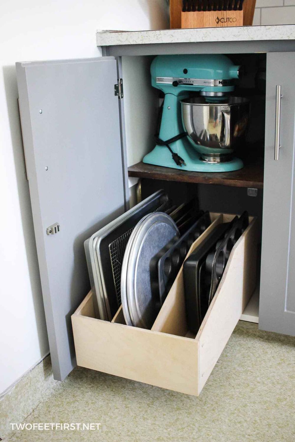 Cada cocina tiene sus propios problemas de almacenamiento y muchas veces están relacionados con cosas grandes y de formas extrañas como bandejas para hornear, bandejas para muffins, moldes y tapas. Un cajón extraíble con compartimentos espaciosos, como el que se presenta en twofootfirst , es una de las soluciones más prácticas que hemos encontrado hasta ahora. No solo es espacioso, sino también bastante versátil, ya que cada compartimento puede contener varios tipos de cosas, a veces varias a la vez.