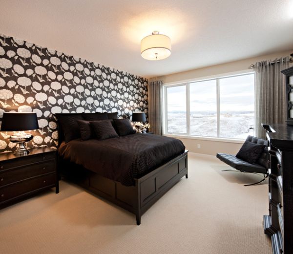 Elige el papel pintado adecuado para un dormitorio con una cama negra. Los diseños de mosaicos en blanco y negro son una opción obvia que funcionará bien. Sin embargo, también considere diseños florales de alto contraste para su dormitorio. Trate de elegir un papel tapiz que cree un aspecto distinto al de la cabecera de la cama para un contraste adicional.