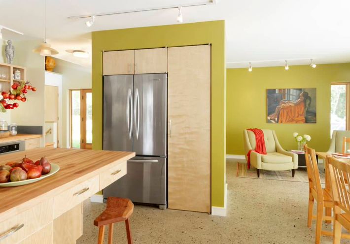 Combinado con maderas claras, el color chartreuse anima con un sabor ligeramente retro-moderno. Asegúrese de que el espacio tenga mucha luz natural para darle al dúo un ambiente refrescante y espacioso.