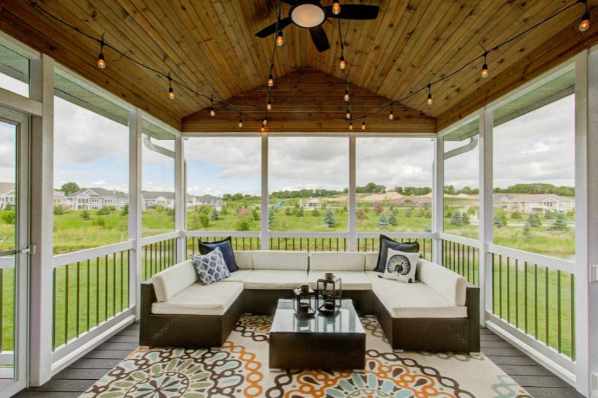 Este también es un tipo bastante especial de porche cerrado en el sentido de que está rodeado de pantallas. Es un espacio cubierto que se puede utilizar durante todo el año ya que está protegido de la intemperie y conectado con el edificio. En algunos casos, se considera una extensión de la sala de estar.
