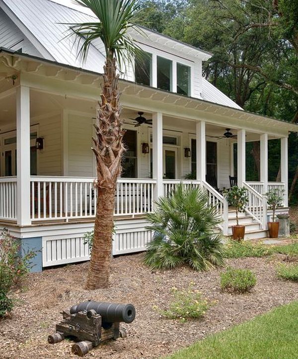 Mientras que otros tipos de porches están adjuntos a la casa, este no lo está. Es una estructura independiente algo así como un pabellón o una glorieta. Puede conectarse a la estructura principal a través de una pasarela o un camino y puede tener una variedad de diseños diferentes.