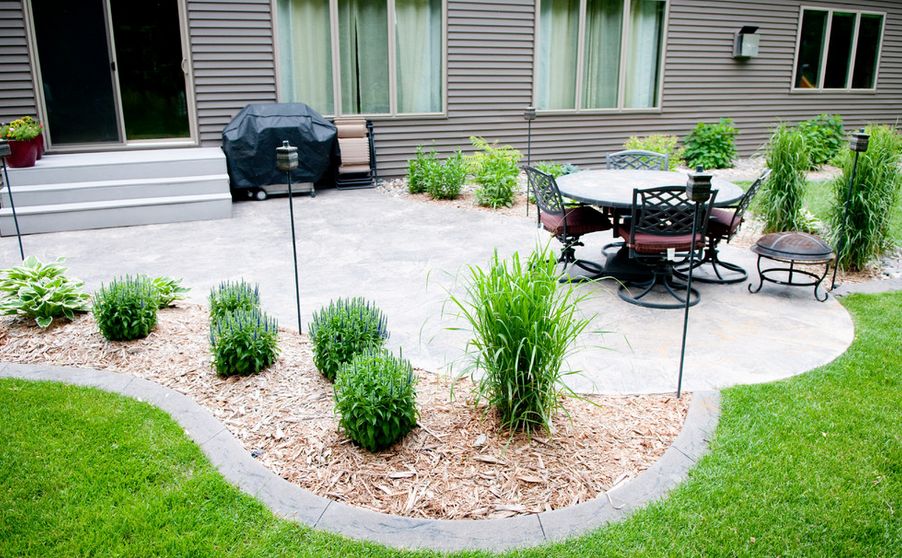 El hormigón se utiliza muy comúnmente para los patios. Es agradable porque te permite crear una superficie muy plana y limpia con un diseño uniforme. Además, el concreto es muy versátil y se puede verter en todo tipo de diseños, para que el patio tenga la forma que desee sin limitarse a usar solo líneas rectas. El hormigón también es un material muy resistente.