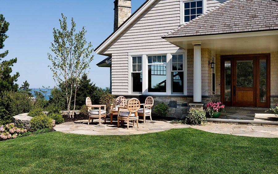 Los patios de losas son favorecidos por su simplicidad y su apariencia natural y orgánica. A diferencia de los adoquines, la piedra natural no se desvanece con el tiempo y envejece maravillosamente, lo que le permite conservar su patio durante mucho tiempo. Las piedras tienen formas irregulares que en ocasiones pueden dificultar la instalación pero, al mismo tiempo, esta es una de sus características más apreciadas.
