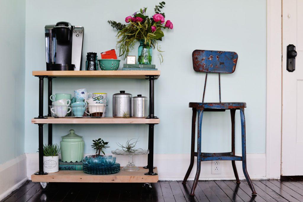 Este carrito de café es muy atractivo. Todo lo que necesita son algunas tablas y algunas tuberías y puede tener un carrito de café que parece costar un par de miles de dólares. ¡Cuanto más trabajo le pongas, mejor será!