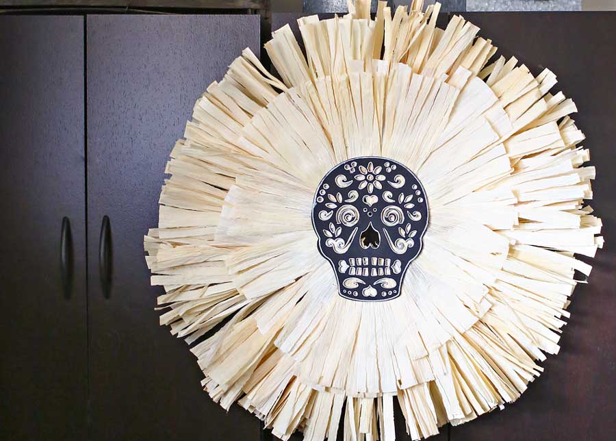 Para este original proyecto de corona de calaveras, necesitará algunos suministros inusuales, incluida una bolsa de hojas de maíz. Usarás las cáscaras para decorar una forma de corona simple. Tomará un tiempo, así que tenga paciencia y no apresure el proceso. Además de las cáscaras, también necesitará alambre floral, una pistola de pegamento caliente, un recorte de calavera, pintura negra y un marcador de pintura blanca. Puede encontrar detalles adicionales en kleinwoorthco .