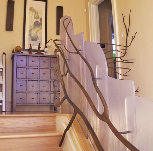 Lleve la naturaleza adentro y use una rama personalizada como una barandilla de escalera de bricolaje. Tienes que encontrar la sucursal correcta. También puedes hacer una rama personalizada y usar la forma como inspiración.