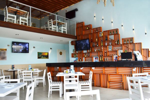 The Fish Shack en un restaurante informal de mariscos decorado con tarimas de madera y paredes de pizarra. El bar está decorado con cuerdas, añadiendo un tema náutico al interior. Los palets reciclados se usaron para revestir las paredes, dándole a este lugar un aspecto rústico-industrial.