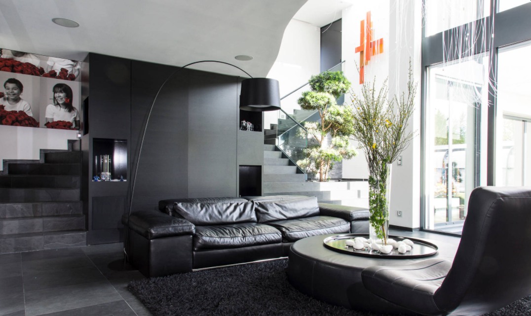 Hay algo muy elegante y refinado en una decoración interior basada en el negro y esto se destaca maravillosamente en este interior por el estudio aEa – agencia de arquitectura Engasser . Esta sala de estar tiene una paleta simple y usa luz natural para darle un toque extra de sabor. Negro, gris y blanco, todavía no le falta carácter. El secreto está en los diferentes acabados y texturas que ayudan a resaltar el negro sobre negro.