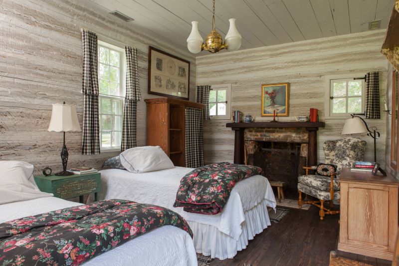 Andrew Sherman Photography presenta este diseño de dormitorio en Chicora Wood Plantation . Las cortinas de cuadros vichy tienen un patrón de cuadros pequeños que funciona como un sólido en medio de las telas florales y toile. Además, las cortinas son hogareñas sin sentirse provincianas.