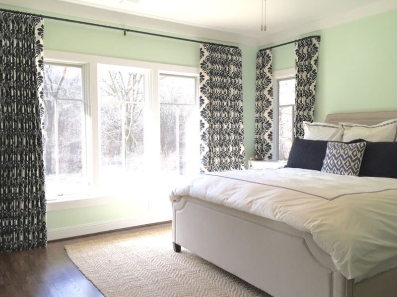 Los dormitorios requieren un tipo particular de cortinas. Deben ser hermosos y también funcionales para la privacidad y el sueño. Legacy Construction Northeast combina cortinas opacas negras con un centro blanco transparente. Por lo tanto, esto permite que las ventanas dejen pasar la luz durante el día pero aún así mantengan la privacidad. Si le gusta este aspecto, busque cortinas opacas en blanco y negro para aportar un alto contraste a su dormitorio.