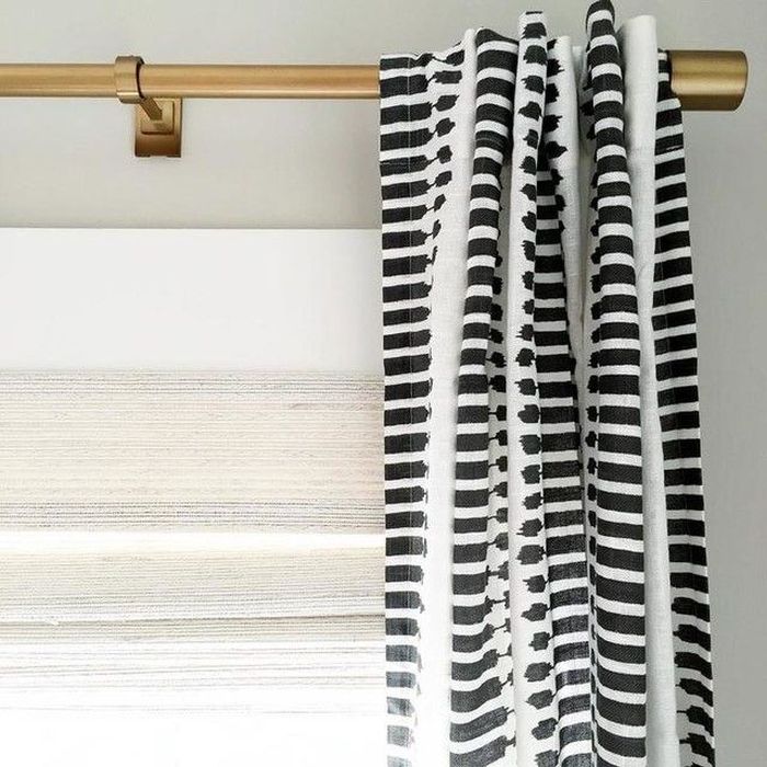 Nos encantan estas cortinas transparentes en blanco y negro de Bouclair . Las ramas negras relucientes aportan la cantidad adecuada de textura a las cortinas para agregar interés sin complicar su simplicidad. Además, permiten que la luz entre en la habitación y aún mantienen cierta privacidad.