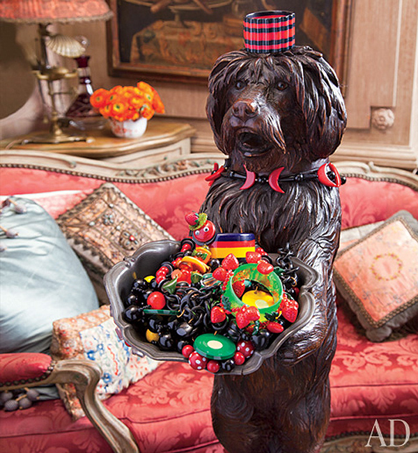 El apartamento cuenta con detalles y decoraciones inusuales y únicos, como por ejemplo, los retratos de perros de los siglos XVIII y XIX que se pueden ver por toda la casa, sillas francesas, libros de arte, pedestales de piedra y muchos otros artículos que se han coleccionado a lo largo de los años.