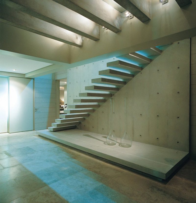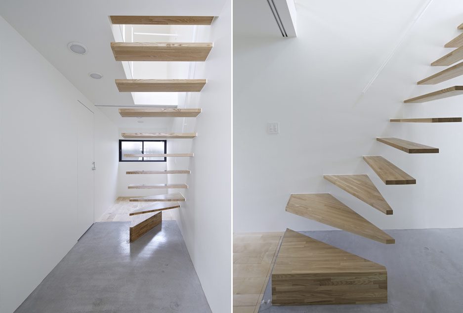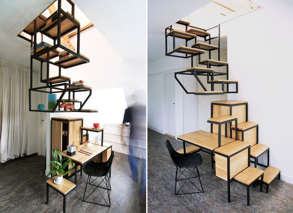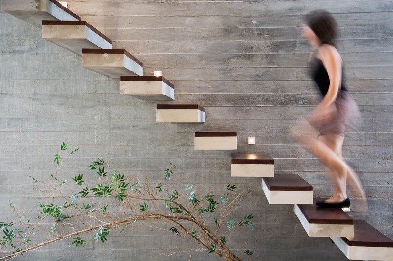 Tendrías que mantener un buen equilibrio al usar estas escaleras flotantes , ya que no hay pasamanos ni otras características de seguridad. Sin embargo, el aspecto es increíble. {Encontrado en feedback-studio }.