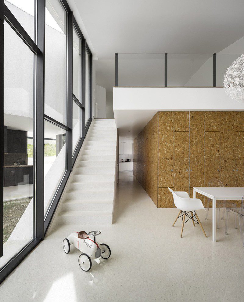 Dado que las barandillas habrían obstruido las magníficas vistas, no se incluyeron en el diseño de esta escalera. Al mismo tiempo, el aspecto limpio y simple de la escalera contribuye a una decoración general muy abierta y brillante. {Encontrado en Architrend Architecture }.