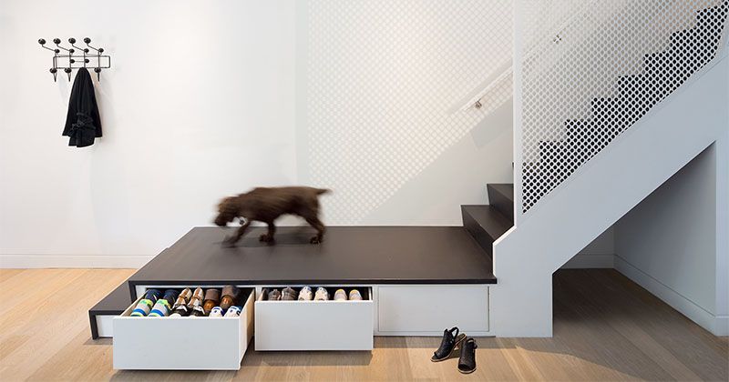 Aquí pasa lo mismo. Esta vez las escaleras esconden cajones extraíbles que son perfectos para guardar zapatos y muchas otras cosas. Déjese inspirar por este diseño creado por Zugai Strudwick Architects .