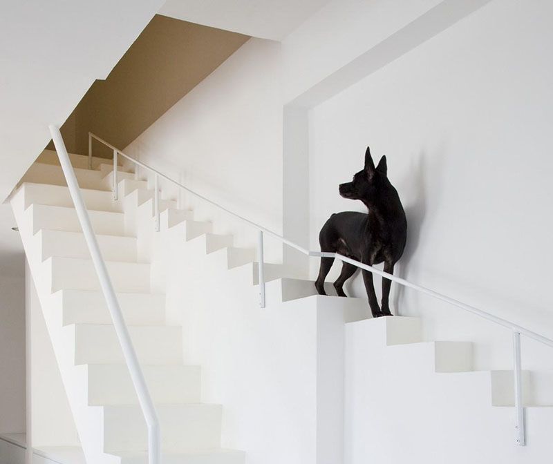 Si tiene un perro pequeño, podría ser lindo y agradable diseñar la escalera con una extensión especial solo para su mascota. De hecho, es una linda idea sin importar el tamaño de tu perro. Solo imagínate a ti y a tu perro subiendo las escaleras, cada uno en su propio carril. {Encontrado en 07BEACH }.