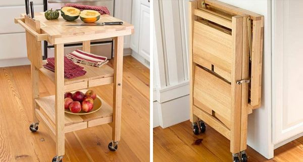 No todas las cocinas son lo suficientemente grandes para acomodar una isla. Por supuesto, una isla de cocina siempre es útil, por lo que una opción puede ser tener una plegable. Puede usarlo solo cuando necesite espacio adicional en el mostrador y el resto del tiempo puede ocultarlo detrás de la puerta, por ejemplo.
