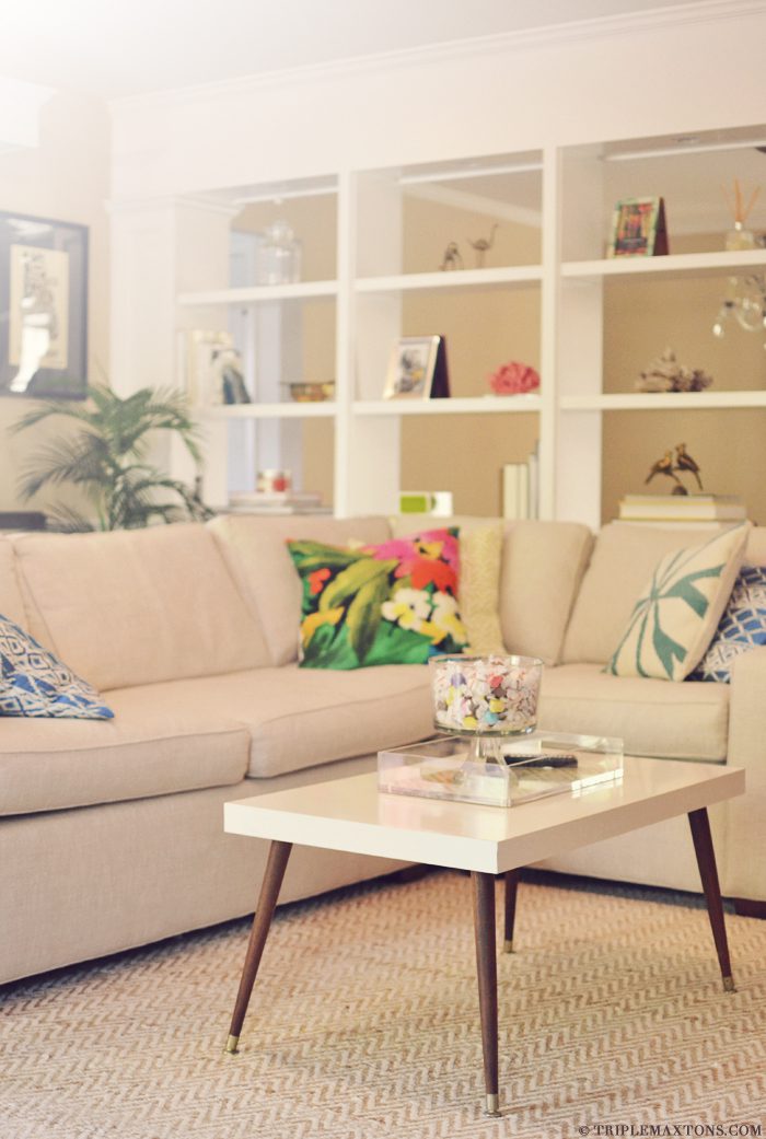 Hay más de una manera de darle un nuevo aspecto a esta mesa de centro. Entonces, ¿qué tal agregar un poco de encanto de mediados de siglo a la mezcla? Para este proyecto solo necesita usar la parte superior de la mesa Lack. También necesita encontrar algunas patas cónicas para usar con él. Básicamente, instale las patas y asegúrese de que sean simétricas y estables. {Encontrado en triplemaxtons }.