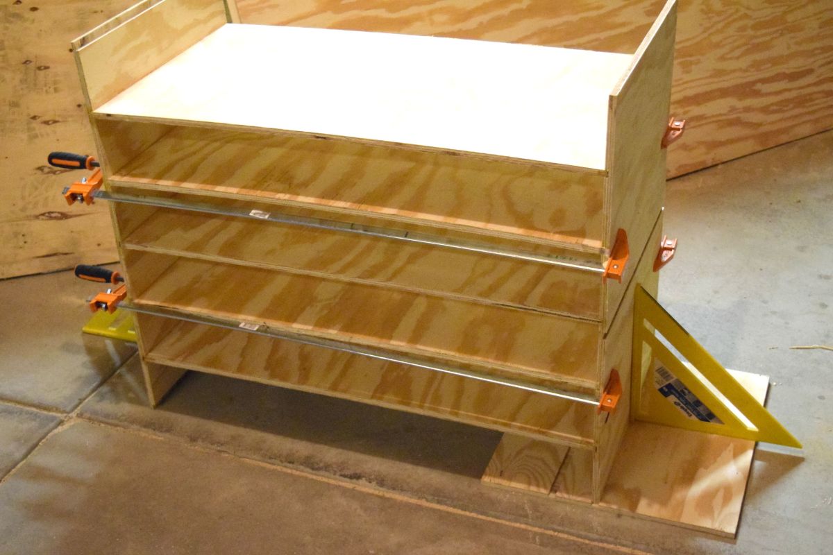 Las abrazaderas ayudan a que el pegamento se adhiera a cada pieza individual de madera. Permita que la rejilla descanse durante la noche. Esto proporciona suficiente tiempo para que el pegamento se seque y asegura que las uniones estén seguras.