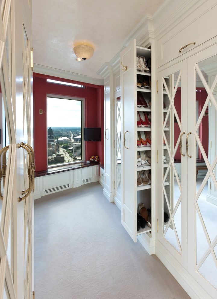 Instale algo realmente lujoso en su vestidor como estos gabinetes para zapatos con puertas de vidrio . Le resultará más fácil encontrar exactamente lo que necesita y ninguno de sus zapatos quedará sin usar gracias a su fácil acceso.