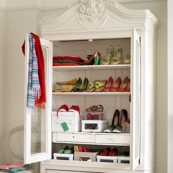 Tome un gabinete de China vintage y con toques femeninos y exhiba sus mejores zapatos de tacón dentro. Tendrá un gran espacio para la organización, pero también para mostrar sus partes favoritas de la colección de zapatos.