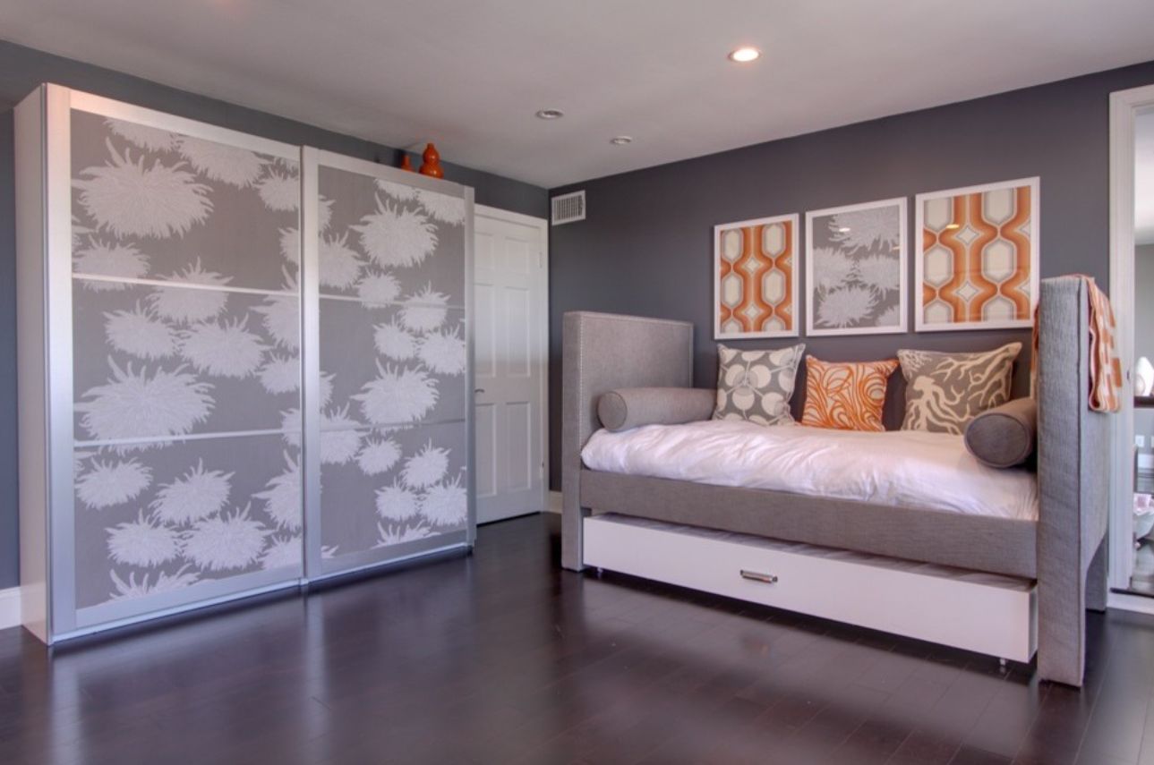 El colchón adicional enrollado debajo del asiento no interfiere con el resto de la habitación. Puedes ver lo hermosa que puede ser esa decoración en el caso de este dormitorio contemporáneo diseñado por Rayna Marz .