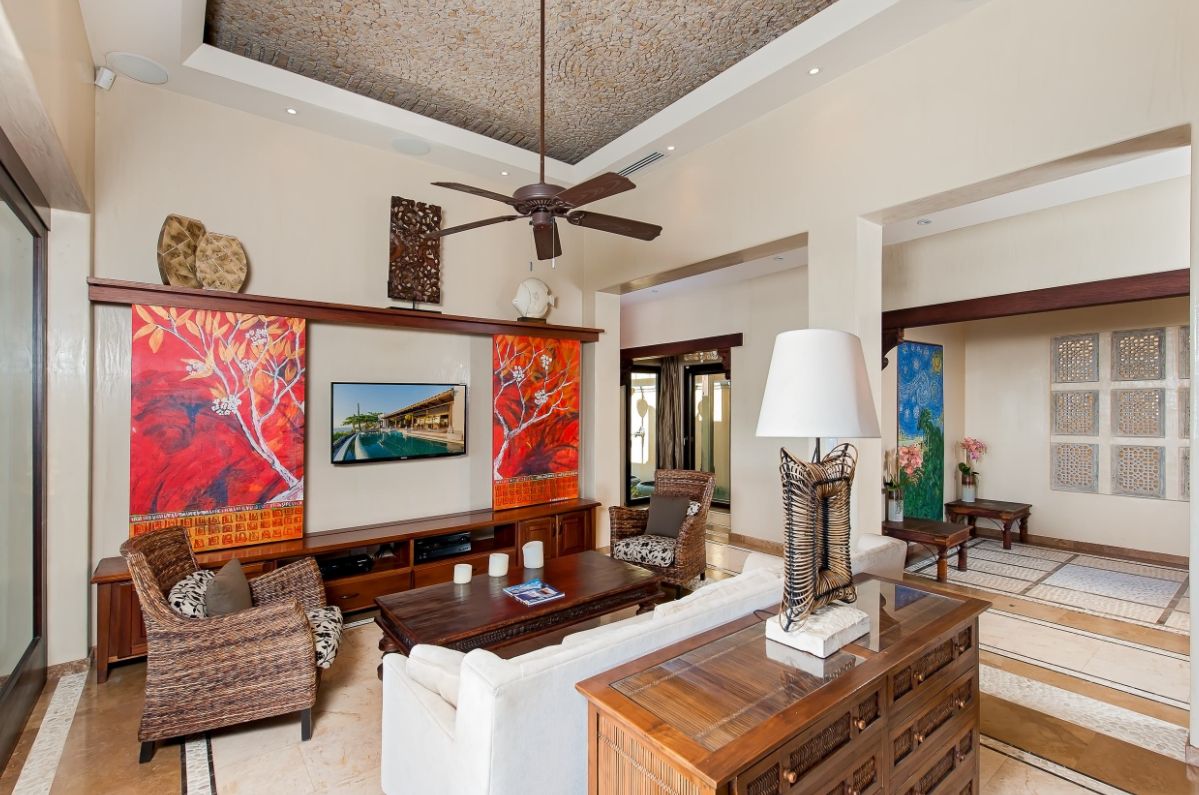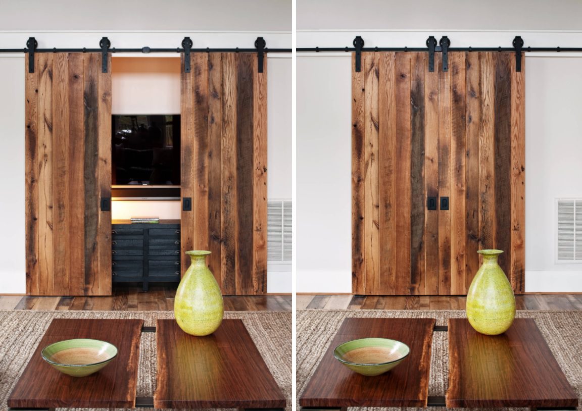 Un dilema común al decorar una sala de estar es el hecho de que el televisor y el arte de la pared son dos elementos que se verían ideales si se colocaran en el mismo lugar. Por lo general, eso no es posible y hay que hacer concesiones. Hay, sin embargo, una solución. Se trata de ocultar el televisor detrás de paneles deslizantes en los que se instalan obras de arte.