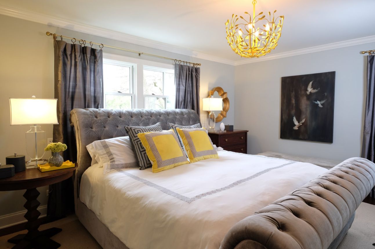 ¿Tienes curiosidad por cómo se vería una cama trineo en un dormitorio contemporáneo? Mira este hermoso ejemplo creado por AMW Design Studio . Tiene un aspecto refinado y alegre, pero al mismo tiempo está amueblado con piezas pesadas, como la cama, el sillón y las mesitas de noche.