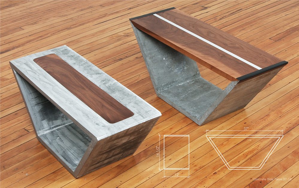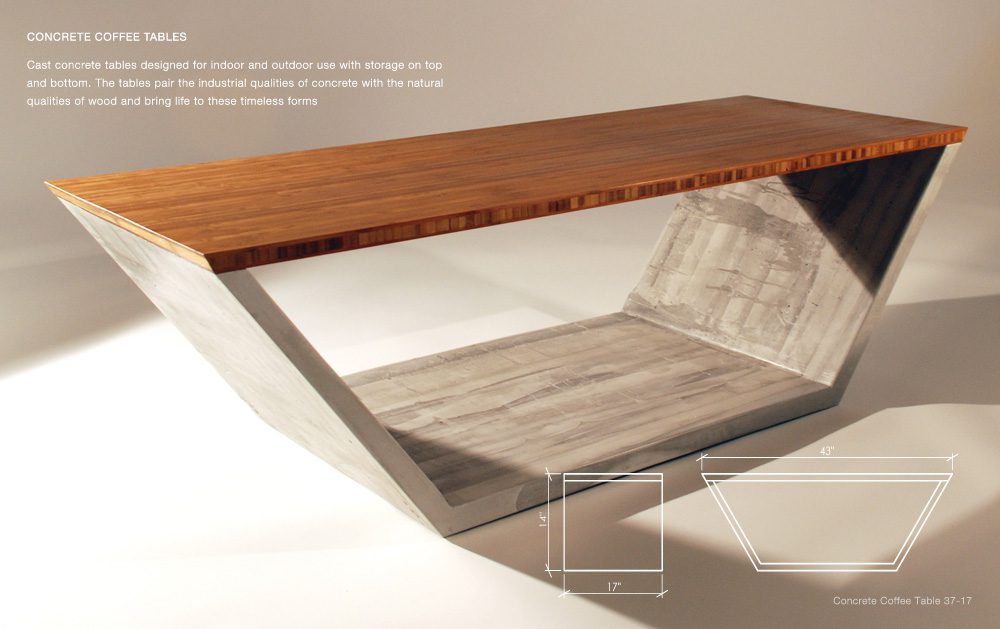 Jeremy Kaplan Design lleva todo el concepto a un nivel completamente nuevo, ofreciendo una serie de mesas de concreto fundido para uso en interiores y exteriores que cuentan con inserciones de madera, almacenamiento en la parte superior e inferior e interesantes formas geométricas.