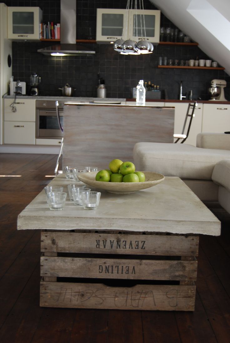 Pero si no estás necesariamente interesado en este tipo de diseños sofisticados y solo deseas explorar la idea misma de tener una mesa de café de concreto, puedes optar por construirla tú mismo. Incluso puedes combinar hormigón y madera y diseñar tu mesa con una base hecha de una caja vieja  sobre la que se añade la tapa de hormigón.