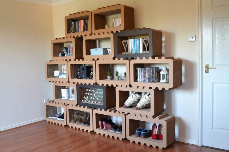 El cartón también es ideal para el almacenamiento, pero no en el sentido de usar cajas para guardar cosas. Estamos hablando de estanterías como la Coop, que están hechas completamente de cartón. Son reciclables y, además, los estantes son regulables. Puede colocarlos a varias alturas para compartimentar la unidad como desee.