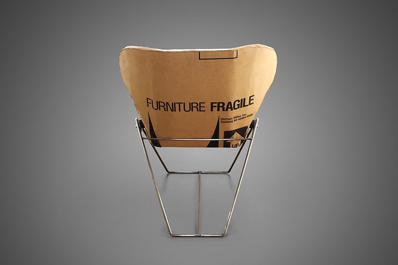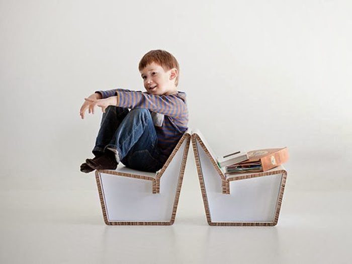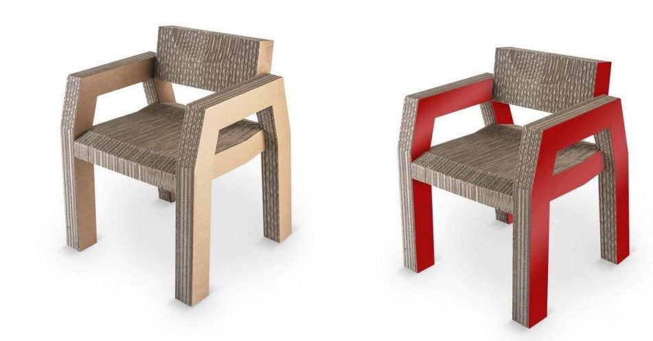 Usar cartón para hacer muebles es una idea ecológica, especialmente si los muebles están hechos de cartón reciclado. Puedes encontrar inspiración en Re-ply , un diseño de Dan Goldstein que convierte cajas de cartón usadas y limpias en sillas. El material se moldea mediante una técnica de moldeado y el resultado final es una carcasa fuerte y cómoda que se fija a un marco de metal fino.